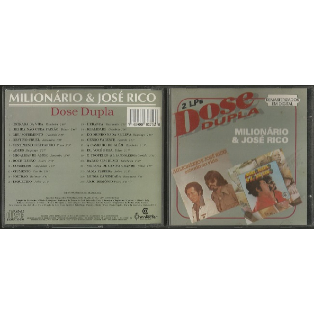 - Título Original Milionário & José Rico - Dose Dupla - Produtos Original: SIM - Usado (Uso Particular) 24 MÚSICAS 2 LP´S REPRESENTADOS EM UM ÚNICO CD - ESTRADA DA VIDA & VOLUME 8 SEM RISCOS - TESTADO & FUNCIONANDO